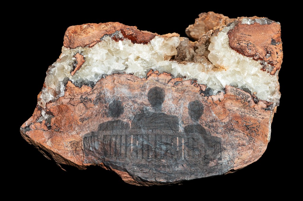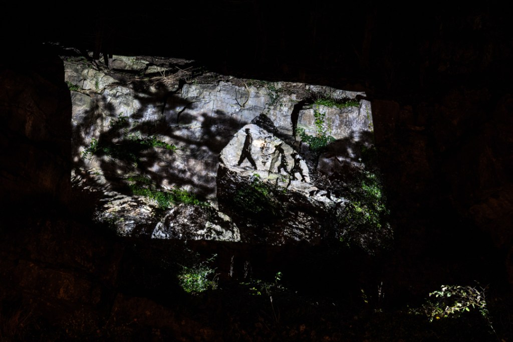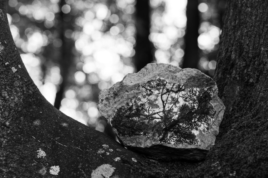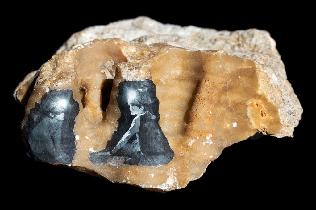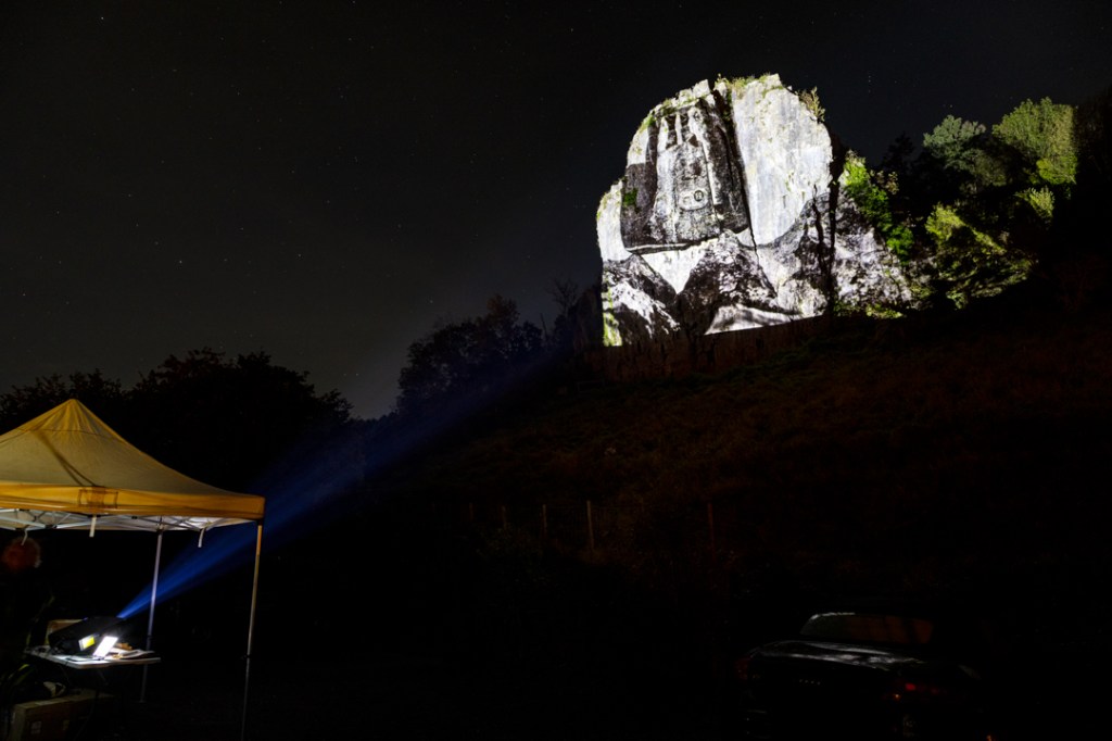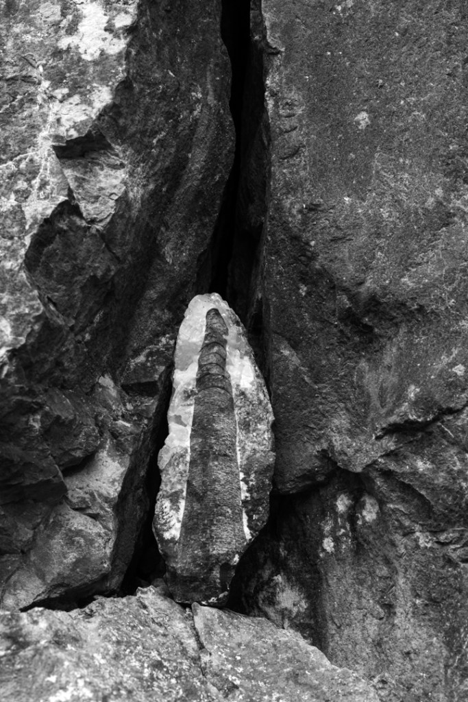 Menhir is a visual exploration of a continually evolving landscape; an aesthetic discovery of the special qualities and unique features of one of the UK’s ‘National Landscapes’. It blends the cultural and natural histories of the region by printing photographs onto local rock specimens and then embedding them in the environment. Each image is stratified and transformed via a combination of time and physical processes, much like the land itself. Furthermore, the photographs were projected onto the natural rock faces around Cheddar Gorge; a final manifestation of the work that encompasses layer upon layer of geological time and cultural history.