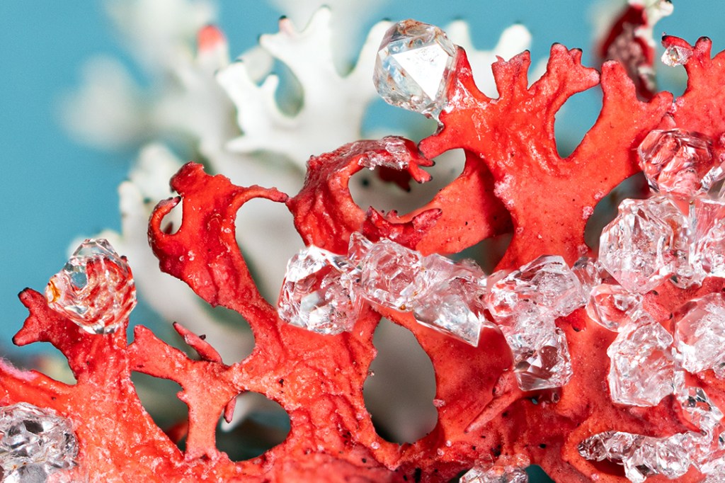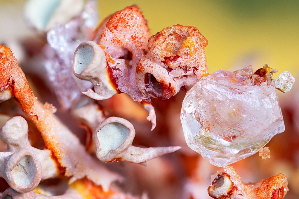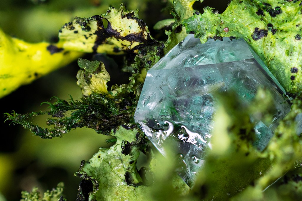Here are a few close-up photographs of my lichen/crystal experiments.