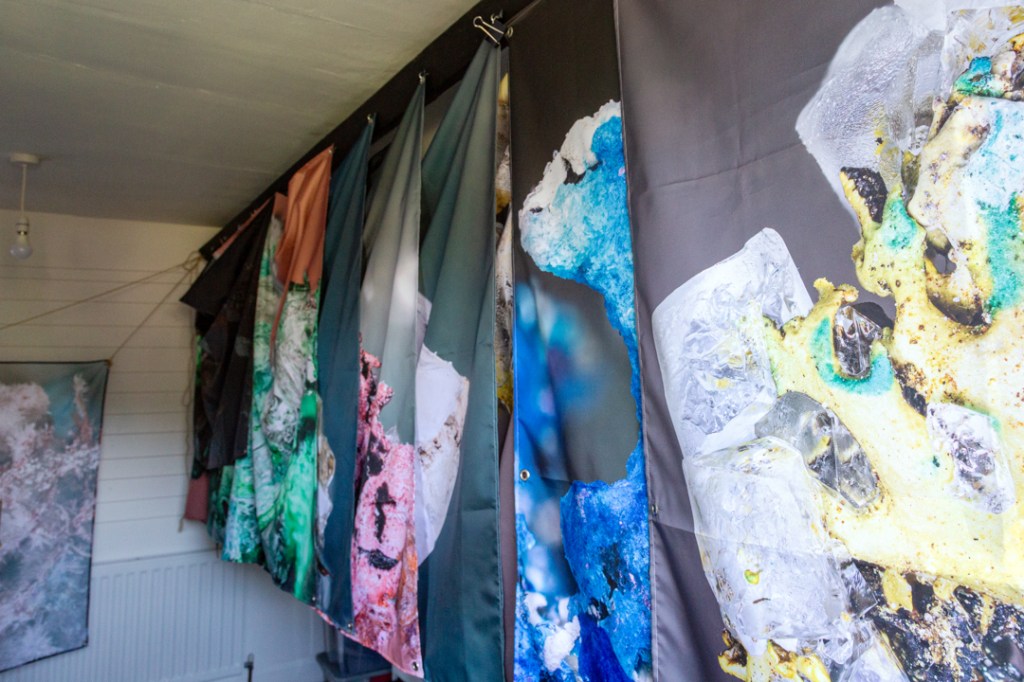 Quality control in progress! My office and studio are both packed full of photographic prints ready for installation next week. The fabric prints make wonderful decorations but it’ll be really nice not to have to duck under them every time I want to find a piece of equipment!