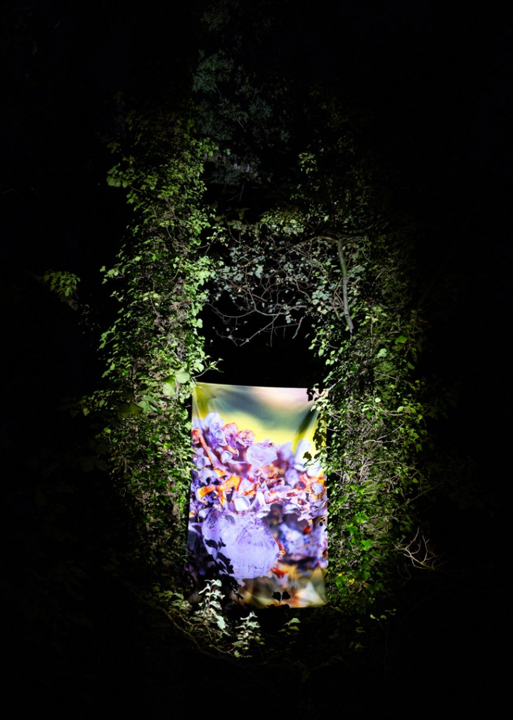 The Horner Wood installation finally came down yesterday – after nearly four weeks of enduring high winds and heavy rain – but it’s been a resounding success. To see the photographs become a part of the ancient woodland that originally inspired them felt incredibly special. One of the most exciting elements of the artwork, was the way that it changed with the prevailing conditions; bright sunny days or cold eerie nights, every change brought something new to the work. Installing the artwork outdoors was a fairly high risk strategy (for a multitude of reasons!) but at the end of the day, it really did encapsulate the festival theme of ‘Landscape: flux and flow’.