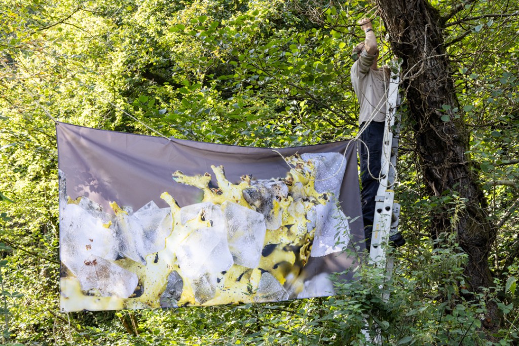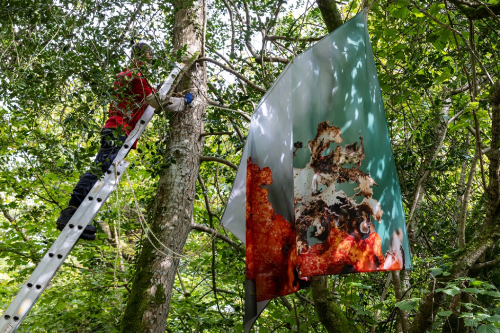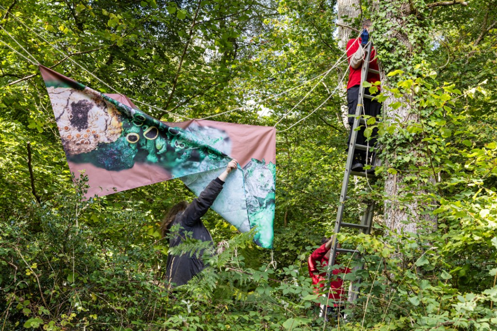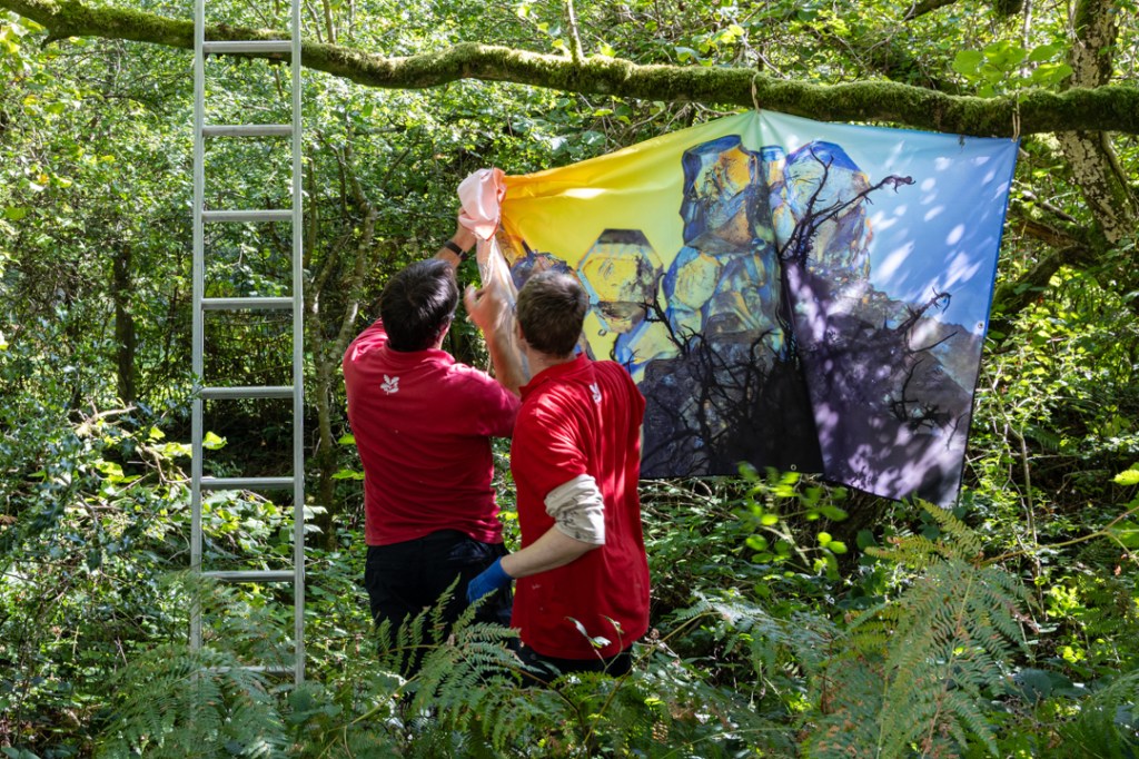 Testing fabric prints in the landscape! Not long to go now until we install these prints in Horner Wood ready for Somerset Art Weeks: Saturday 21st September to Sunday 6th October 2024.