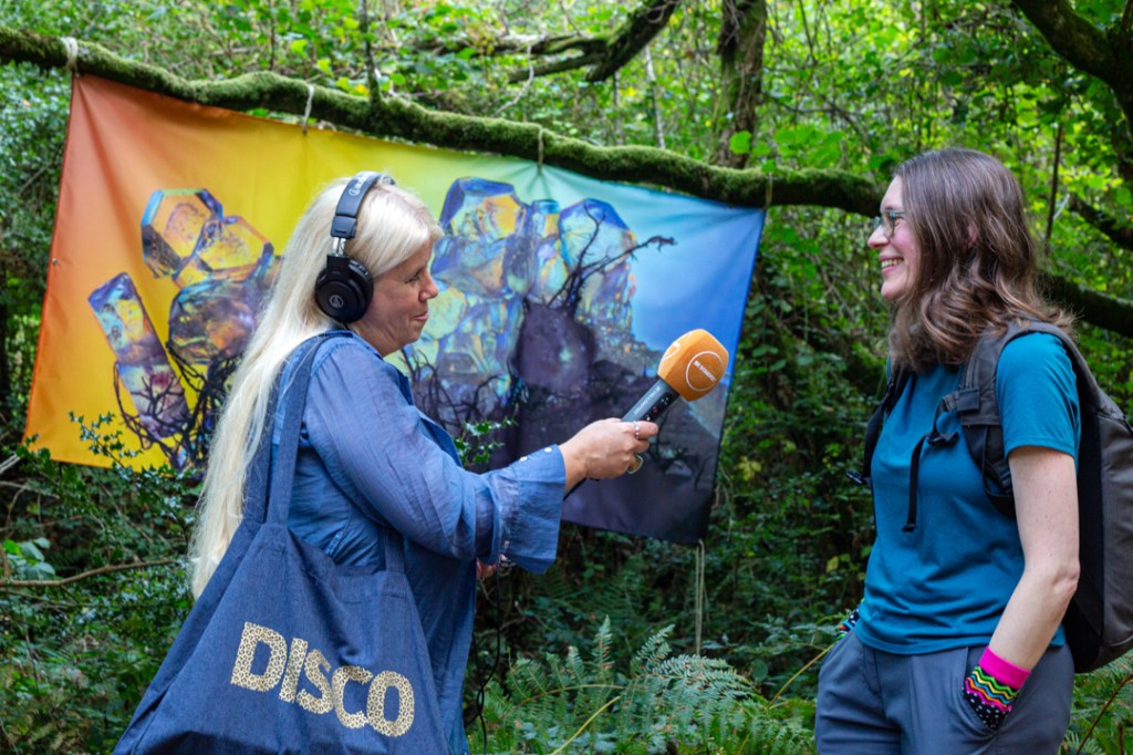 It’s been an absolute pleasure talking to people about my project during Somerset Art Weeks. I’ve had some really wonderful conversations about the work both in Horner Wood and at the related exhibition in the library. In addition to the evening Private View, I’ve also been interviewed by Jenna Myles for her new radio station ‘Be Somerset’ and I’ve hosted an evening walk and talk for the local Beaver Scouts group. Having been able to engage viewers in conversations about temperate rainforests, lichens and climate change has been incredibly rewarding!